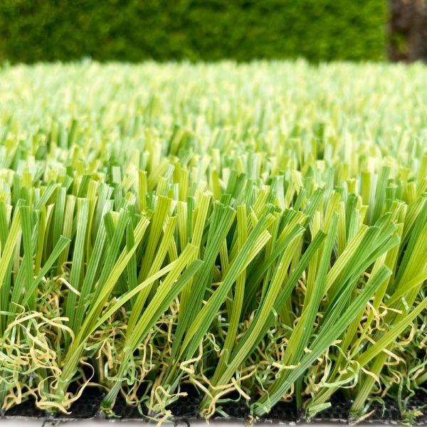 This grass is specially designed with 3 different shapes, 9 fibers monofilament and 6 fibers curly yarn, lush and fantastic epic performance. It gives extraodinary fast recover and immediate to stand supporting to this grass and it is absolutely perfect for landscape and leisure areas, as its fiber shape supporting has more air movement and standing ability, everybody loves it. For the color, the unique designer refers to the natural grass in the autumn, giving your ground more vivid duration.